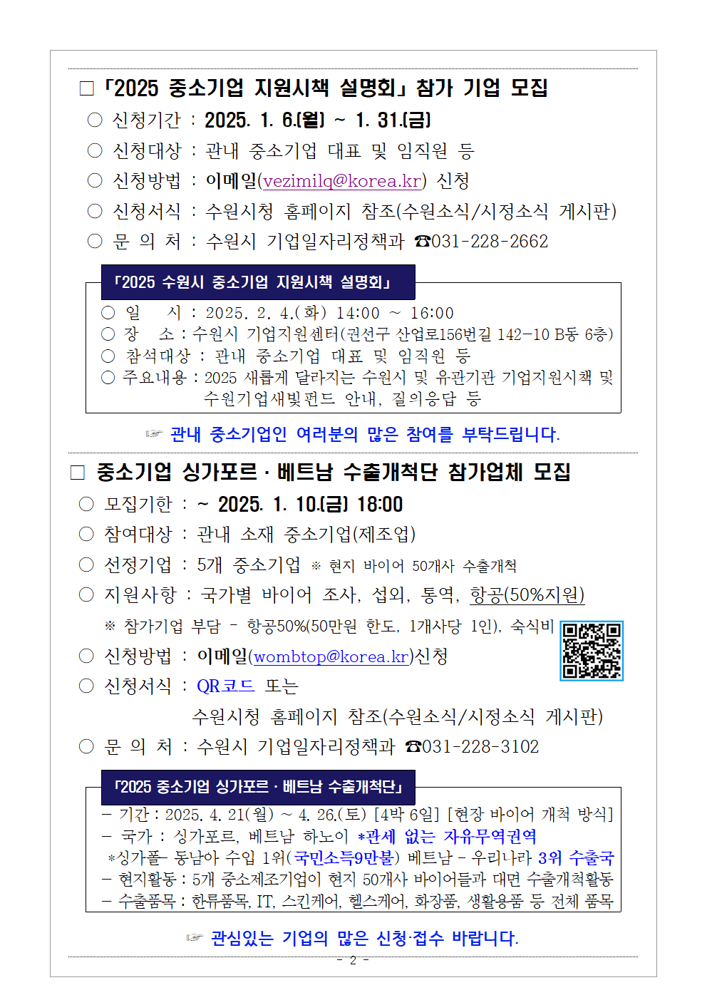 [수원시] 2025 수원시 싱가포르·베트남 수출판매개척단 참가 희망 중소제조기업 모집 안내