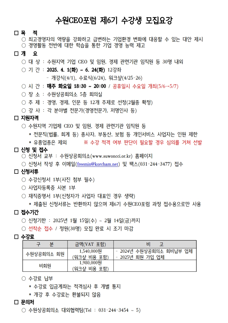[수원상공회의소]수원CEO포럼 제6기 수강생 모집 안내